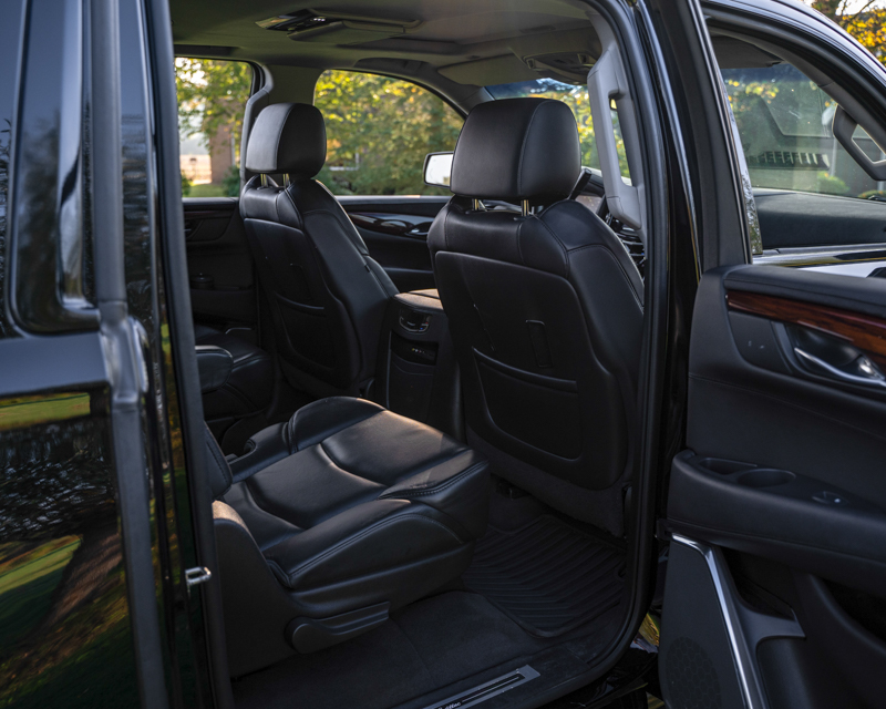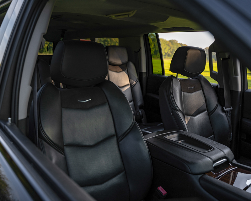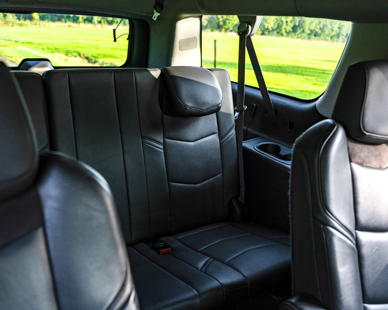 7 comfortabele stoelen met eigen beeldschermen en draadloze Cadillac headsets