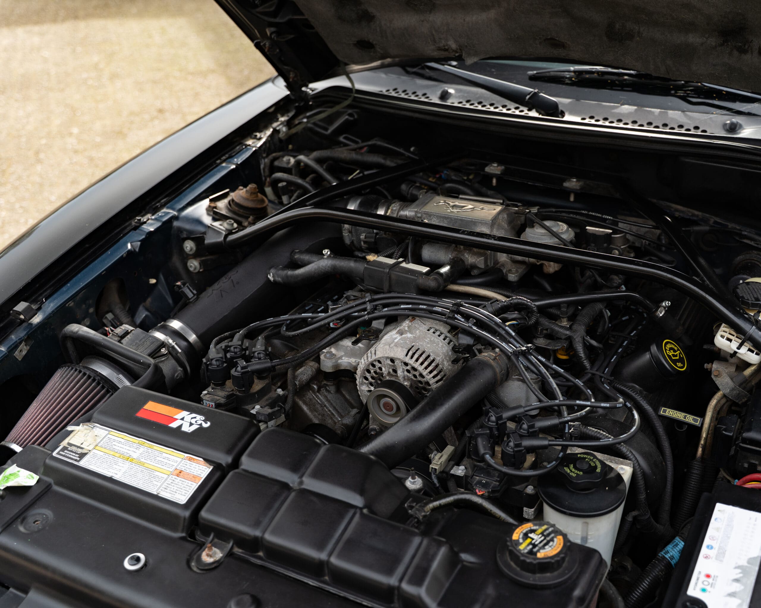 De 4.6L V8 doet precies wat je hoopt: lekker geluid, genoeg power en een grote glimlach als je hem start. De zwarte lak geeft hem een strakke en mooie uitstraling, helemaal in combinatie met de sportieve velgen.