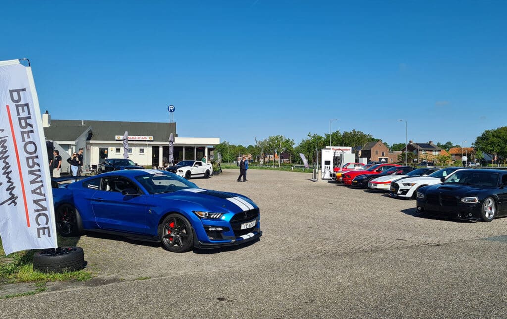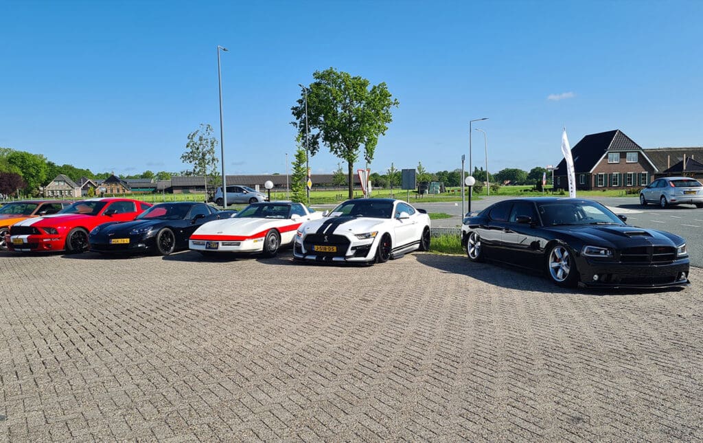 Dinsdagochtend voegden er zich nog twee Mustangs bij de groep en waren we klaar om te gaan! Na een rit van 15 minuten naar de Mustang Garage arriveerden we bij Mustang Fever 2025.